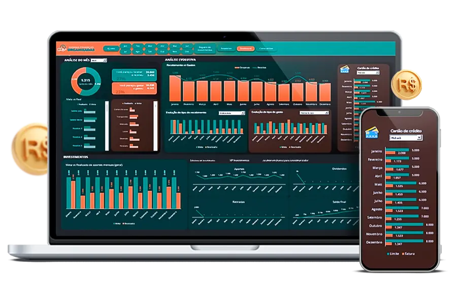 Tenha uma visão geral da sua vida financeira com ajuda de um Dashboard Fácil e intuitivo.